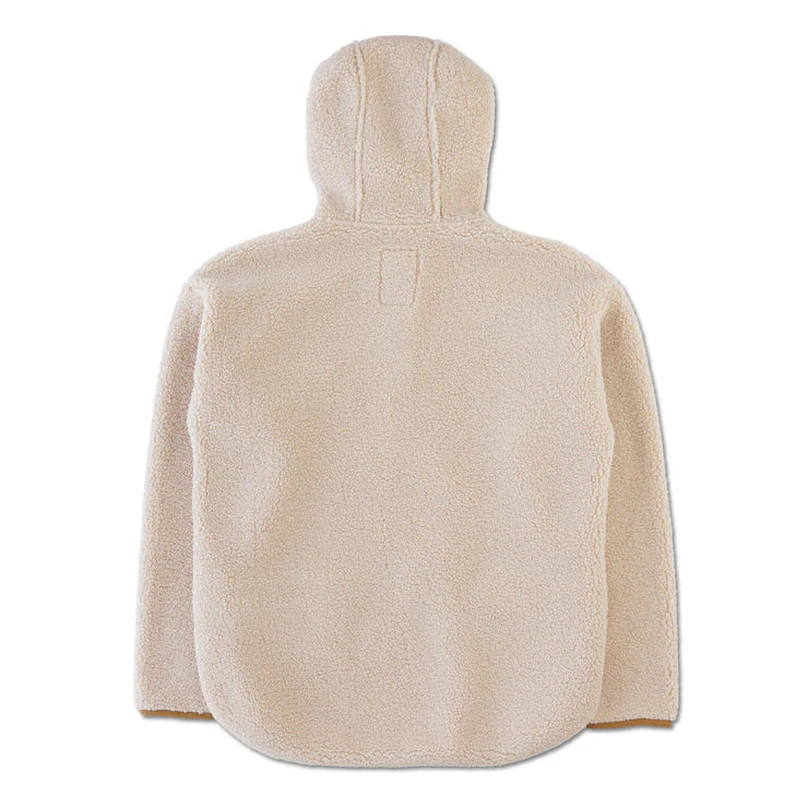 Fabric: 15oz 100% certified recycled polyester high pile sherpa fleece bonded with polar fleece Accent Fabric: 3oz 100% certified recycled polyester solid matte woven