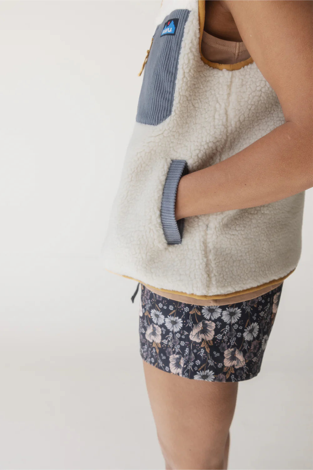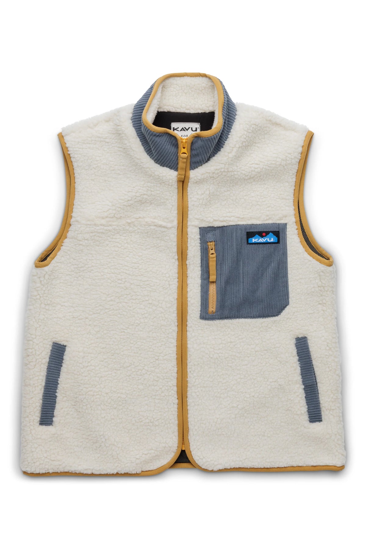 Zip it up with the Ozette. This lightweight sherpa fleece vest brings breezy warmth with bold prints and a patched-on chest pocket that pops. Layer it over a tee for cool mornings, camp nights, or anywhere else your KAVU day may take you.