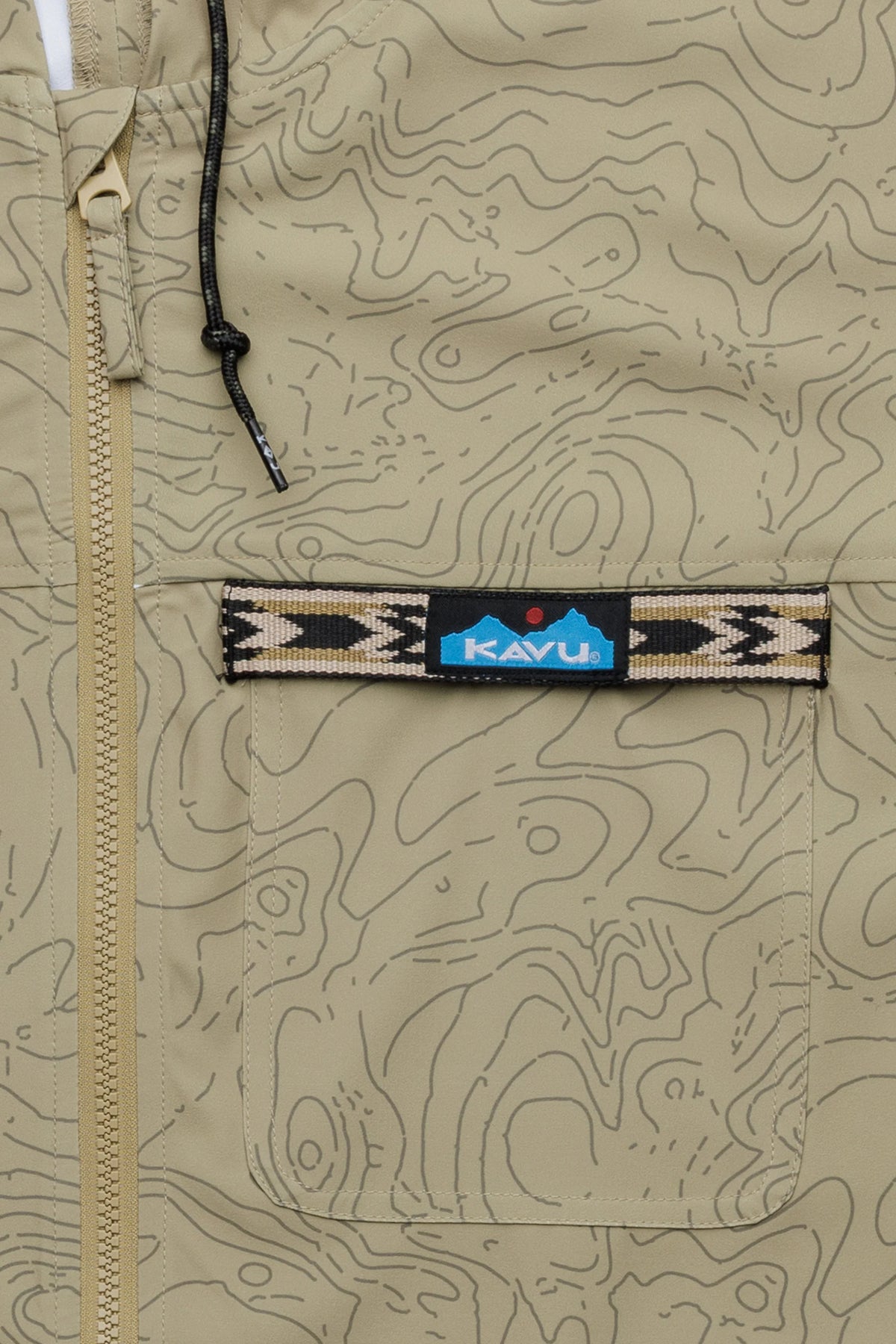 Casual fit, full zip light weight jacket, three panel hood with drawcord and logo printed aglets, interior self-fabric neck tape, front chest pocket with patterned webbing detail and hook and loop closure, mesh lined hand pockets, gusseted underarms, back drop tailed hem and bungee cord with cinch lock.